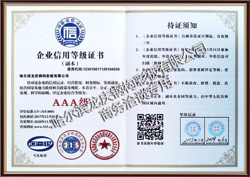 企业信用等级证书